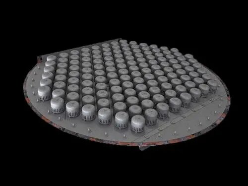 泡罩塔是指以泡罩作为塔盘上气液接触元件的一种板式塔。液体由上层塔盘通过降液管,经泡罩横流过塔盘,经泡罩的齿缝分散到泡罩间的液层中去,与液体充分接触。优点是生产能力大,不易堵塞,操作弹性大。泡罩塔盘的设计使得气液两相在塔内能够充分接触,传质面积大,因此塔盘效率高。泡罩因升气管高出液层,不易发生漏液现象,有助于液体的存留和传质。在蒸汽速度很小的操作条件下,适应性比其他类型的塔板要强。