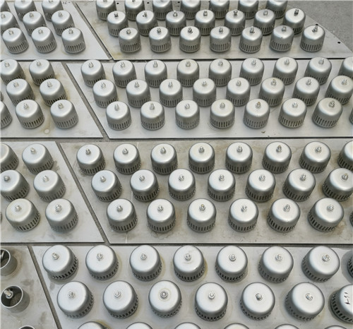 4、废硫酸浓缩装置泡罩塔盘 CPVC材质塑料泡罩塔板带降液管受液盘使用时气液流量不得超过液泛线,若超过会使气相通过一层塔板的压力降过大以及雾沫夹带过大,同时液相通过降液管的阻力增大。引起降液管液泛或雾沫夹带液泛,破坏塔的正常操作。