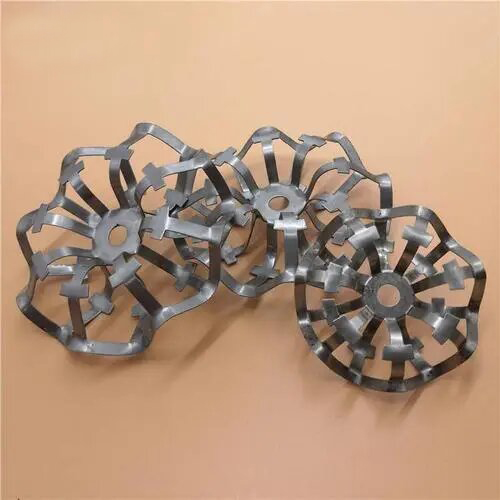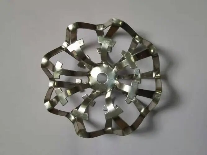 不锈钢花环在脱水性能、使用寿命等方面都比塑料花环优越。利用高炉休风检修的机会将原塑料花环全部取出,填充铝合金花环,由于该不锈钢填料相对质量轻、体积小,同时将原隔板网更换为漏径小的姜形网。喷碱塔金属花环填料辽宁钢铁厂不锈钢泰勒花环填料加强型直径DN108DN76铝合金花环材质密度为2.7g/m3,表面因有致密的氧化物保护膜,不易受到腐蚀,可在300℃以下的介质中不变形,不锈钢金属花环填料作为填料可长期使用,常被用来制造化学反应器及填料,医疗器械,冷冻装置,石油和天然气管道等。