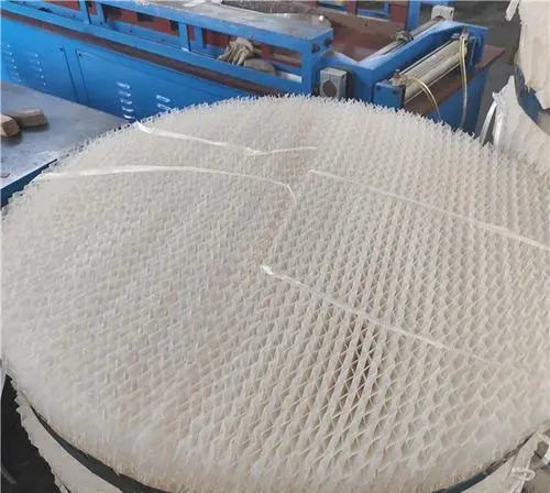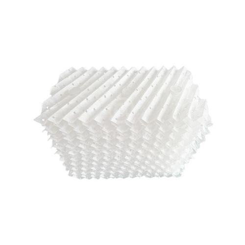 它具有耐腐蚀性、积累密度小、操作弹性大、放大效果不明显,可适用于强酸等腐蚀系统。塑料规整填料具有规则的形状和结构,能够提供较大的比表面积,有利于气液两相的充分接触和传质。规整填料的结构设计有助于减小流体在填料层中的阻力,降低填料塔的压降,从而降低能耗。塑料规整填料的形状规则,易于在填料塔中安装和拆卸。同时,其表面光滑,不易堵塞,方便清洗和维护。